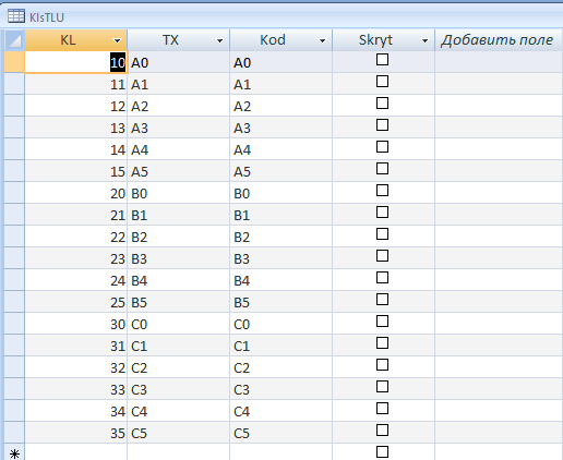 Но у Вас же значения поля KL в 10-ке совершенно другие! Четырехзначные автоматически формируемые, а в 6.8 - двузначные порядковые... Нужен список кодов KL из десятки.
