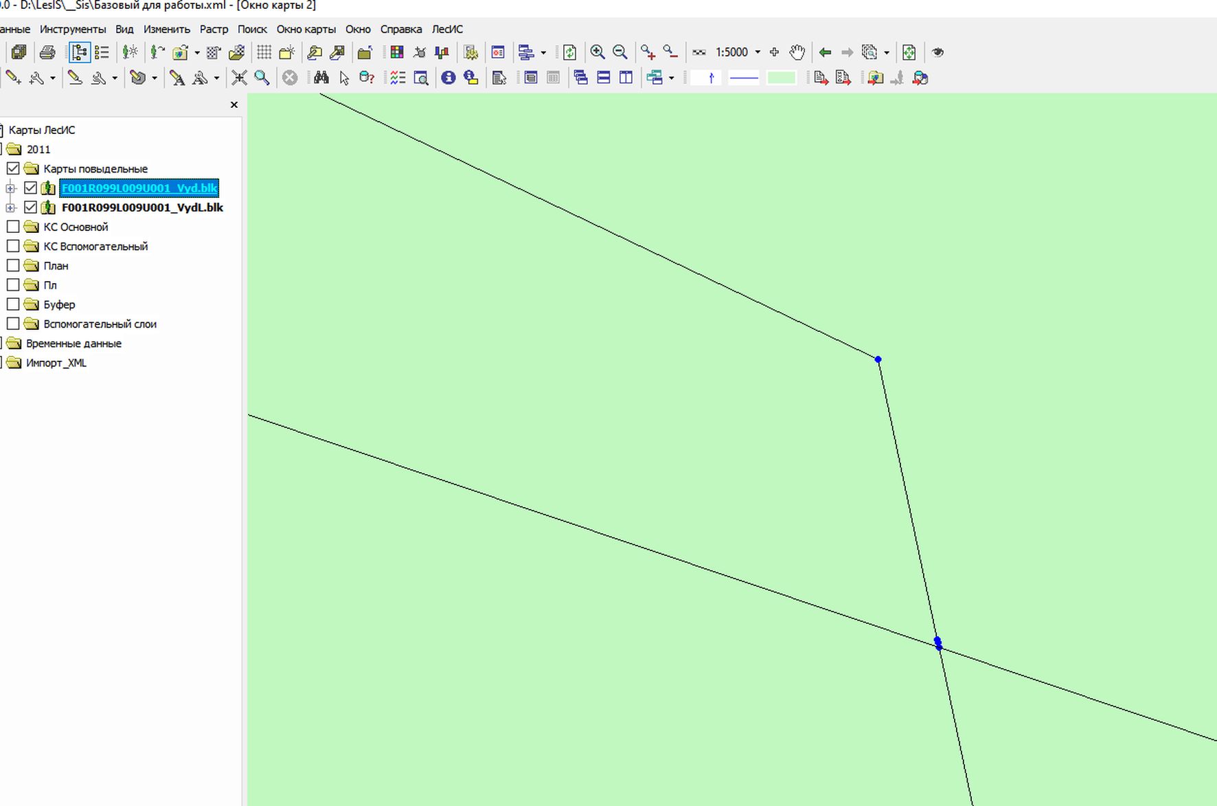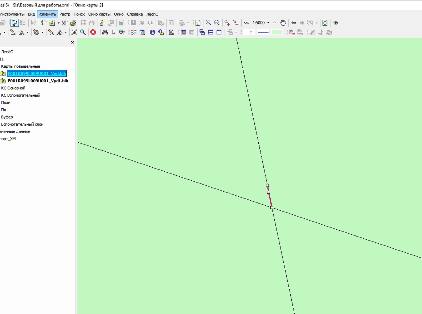 кв 38 выд 25 деморегиона. линия - выдела инструментальная гр. Юговосточная часть выдела, отрезок 0,1 м. на этом отрезке три точки. этот отрезок уничтожиться при запуске "Изменить - Линии - Соединить линии", а вот точки от оцифровки на нем останутся. Здесь нужен другой механизм поиска.